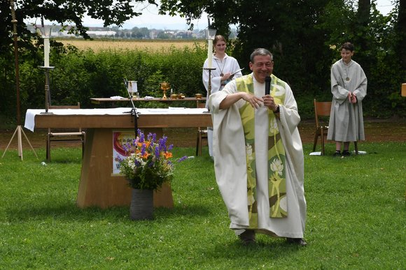 Am 27.06.2021 fand bei herrlichem Wetter auf dem Gelände des TV Kleinniedesheim das "Fest in der Mitte" unter dem Motto "Peter und Paul" statt, zelebriert von Pfarrer Markus Hary.