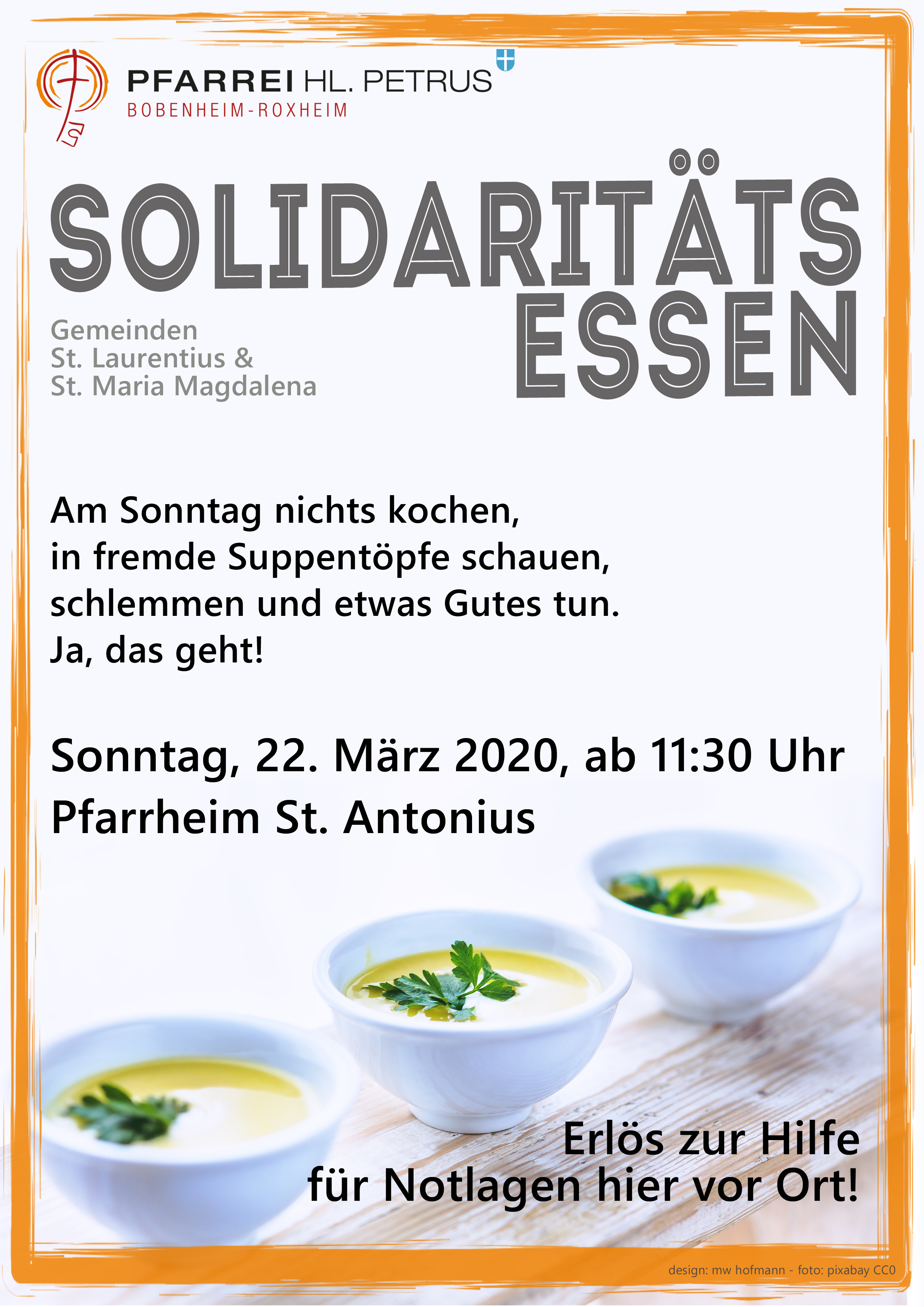 Sonntag, 22. März 2020, Solidaritätsessen ab 11:30 Uhr