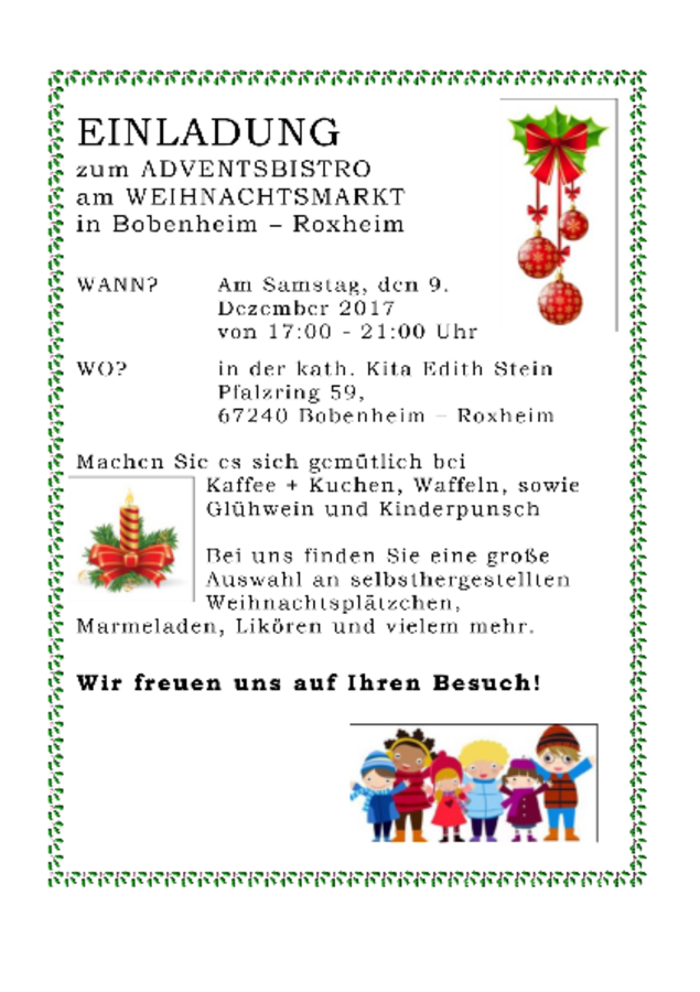 WO? In der kath. Kita Edith Stein, Pfalzring 59, 67240 Bobenheim–Roxheim