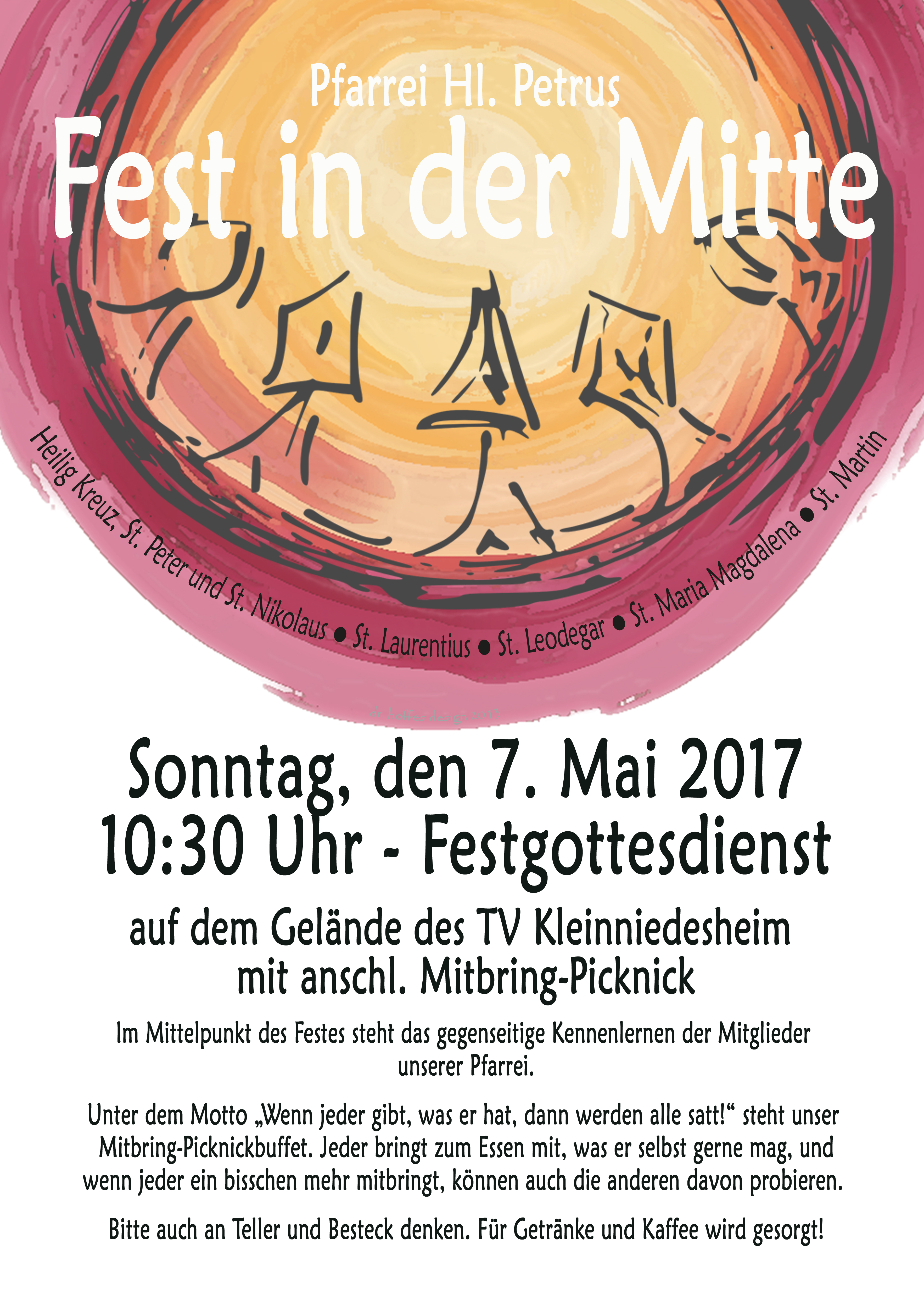 Festgottesdienst auf dem Gelände des Turnvereins Kleinniedesheim mit anschl. Mitbring-Picknick.