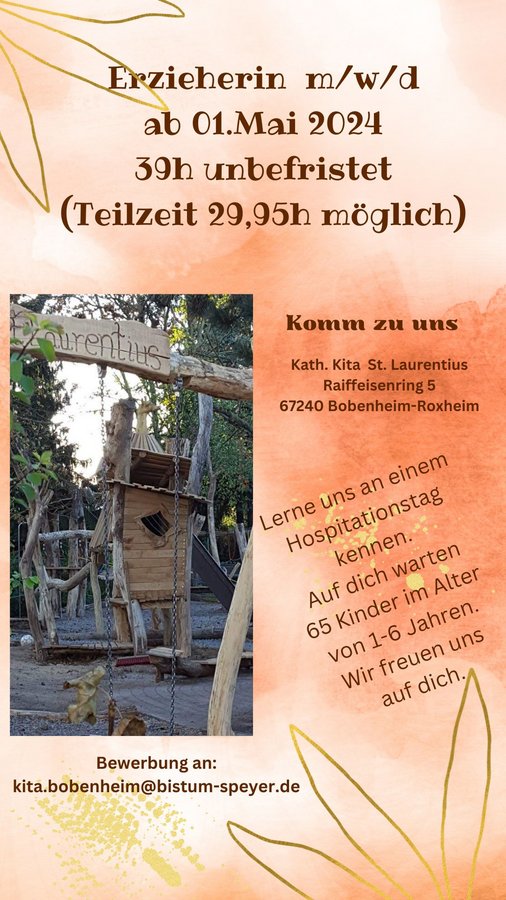 Bewerbung an: kita.bobenheim@bistum-speyer.de